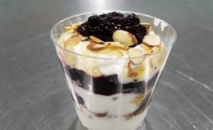 Notes: This can be eaten with low-fat granola that adheres to the carbohydrate criteria. You will layer this in with the nuts and blueberry mixture.